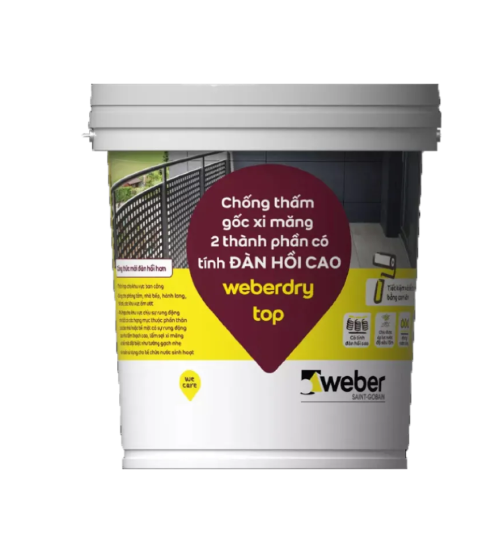 Weberdry Top – sản phẩm chống thấm gốc xi măng vượt trội, được đóng gói tiện lợi trong lon 5kg. Với khả năng chống thấm bền bỉ, dễ thi công và an toàn, đây là g